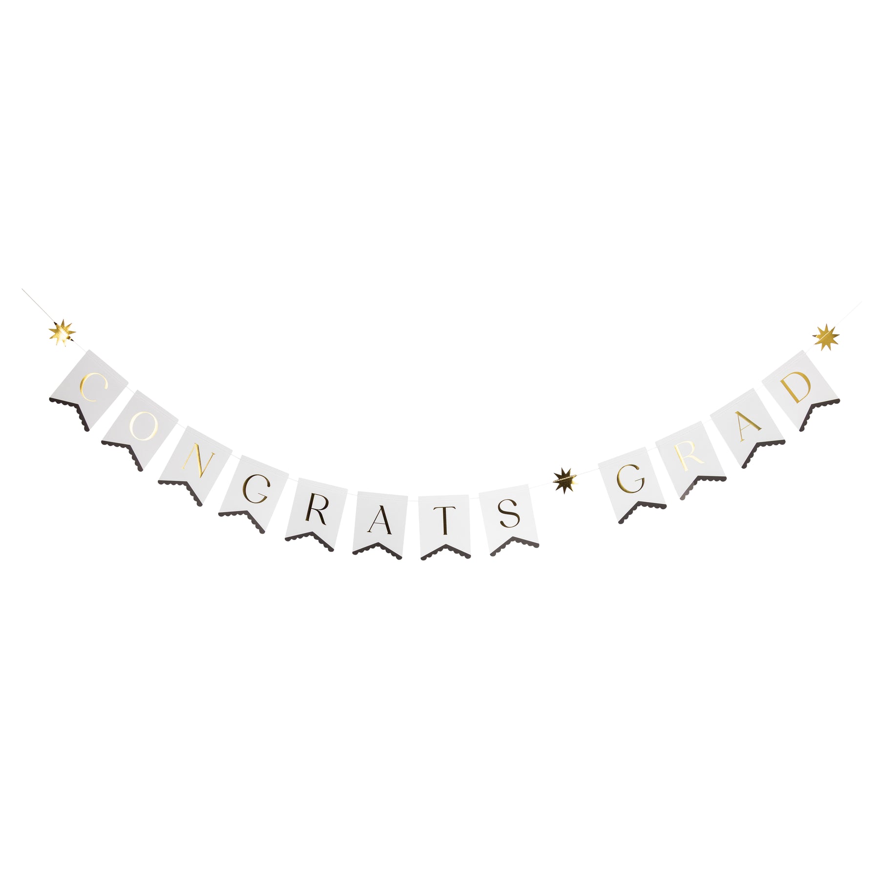 • Includes 12 letter pieces spelling “CONGRATS GRAD,” each with a scalloped bottom edge