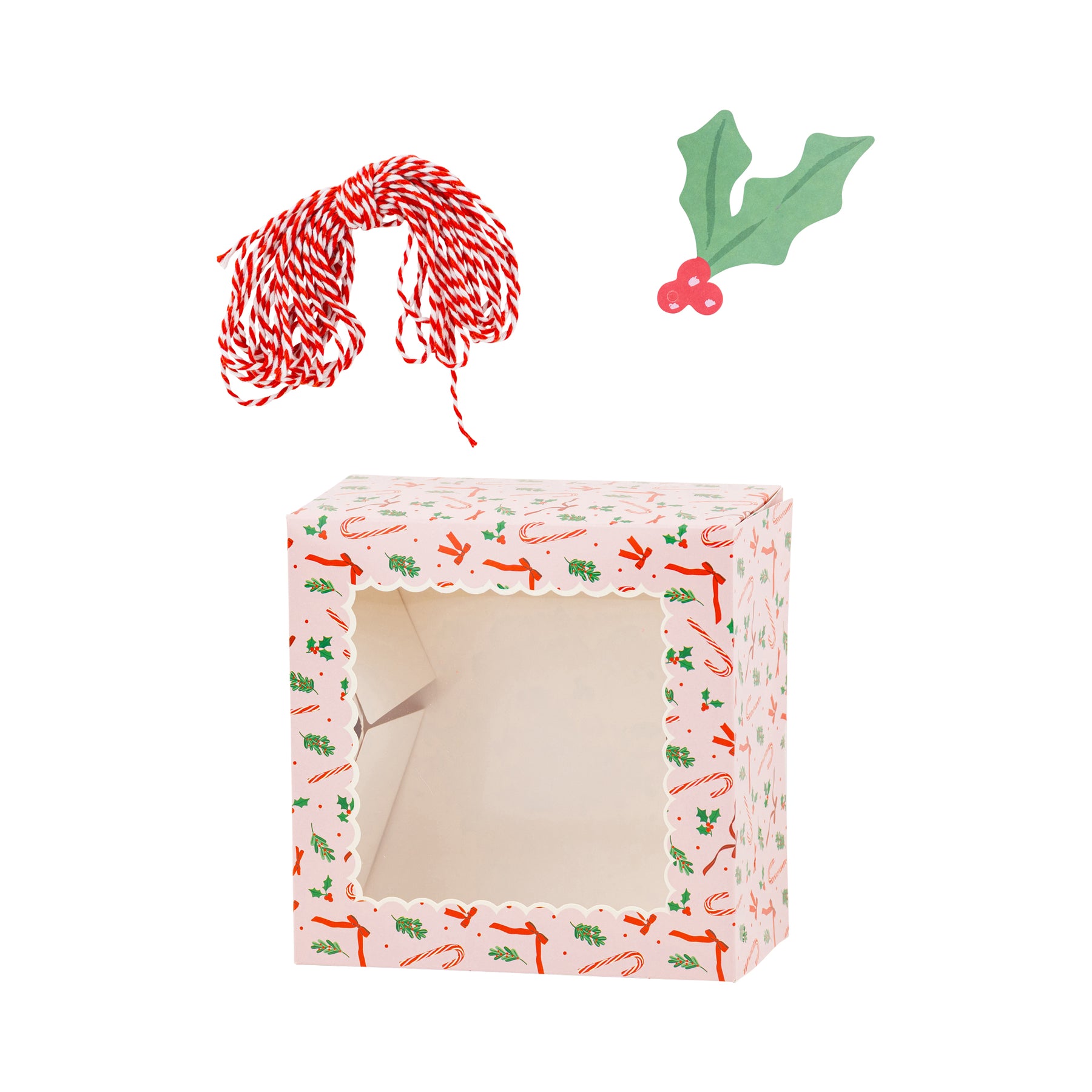 Brighten your holiday celebrations with these Pink Candy Cane and Holly Cookie Boxes! Perfectly sized for Christmas treats, their festive design featuring candy canes and holly adds holiday cheer to your giving. Use them as charming gift boxes or fun party favors to spread sweet joy all season long.